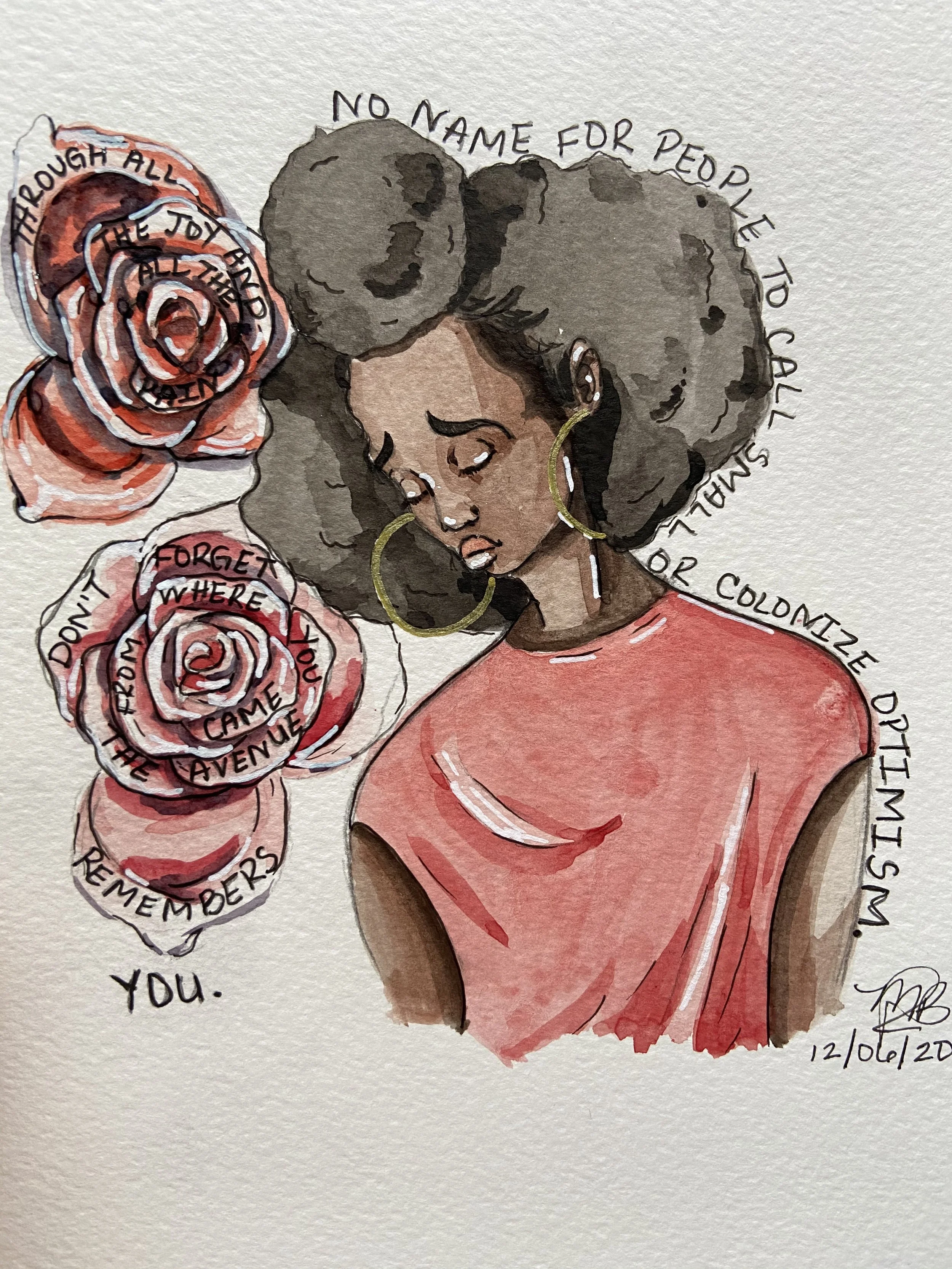 This piece was painted for a local Breast Cancer Awareness Walk held on September 27th, 2025. The connection to this event stemmed from the Cycle Cell Anemia walk held on the 13th of September. The lead organizer desired a feature painting to be created and produce a print for a raffle give away.