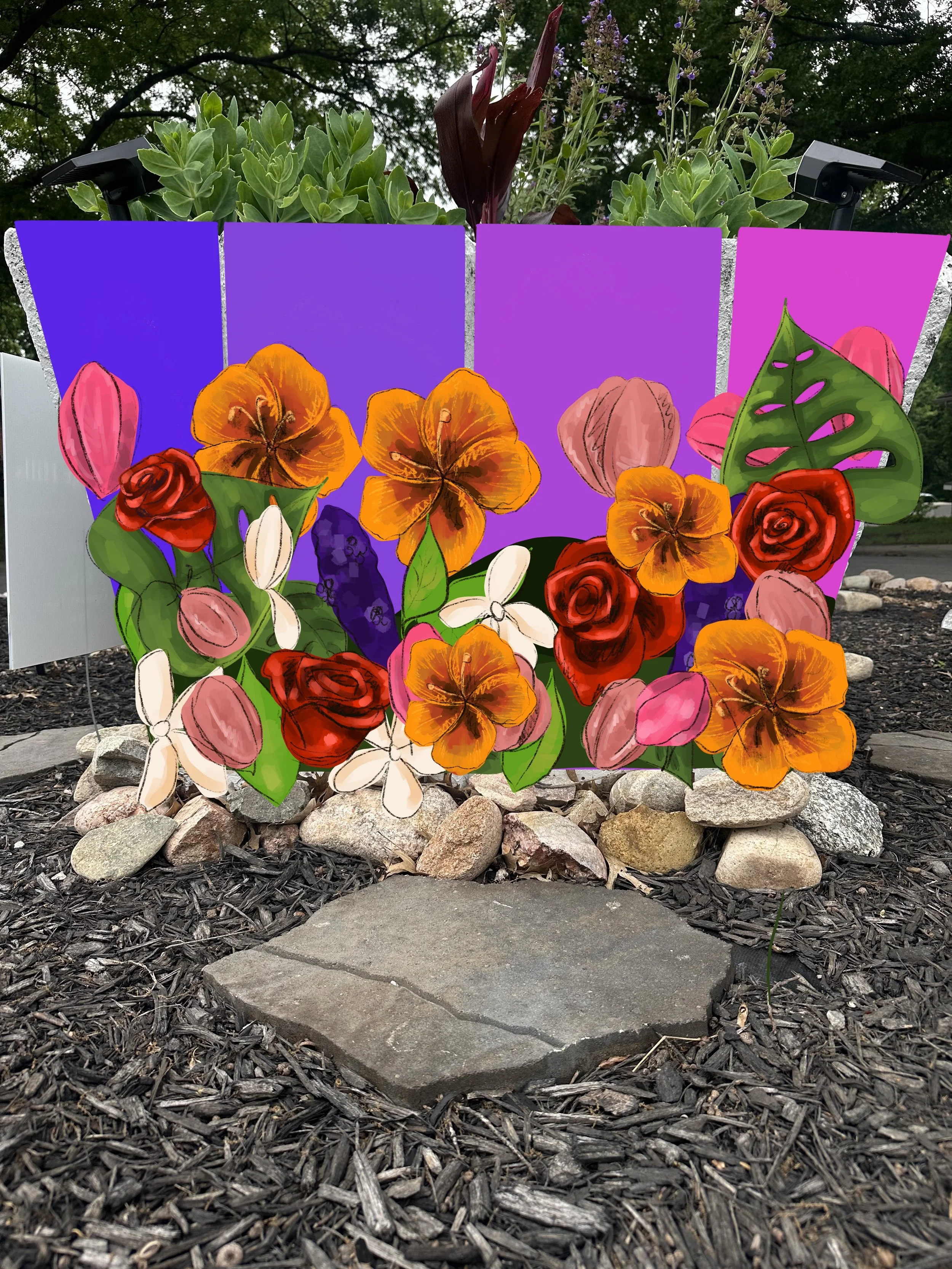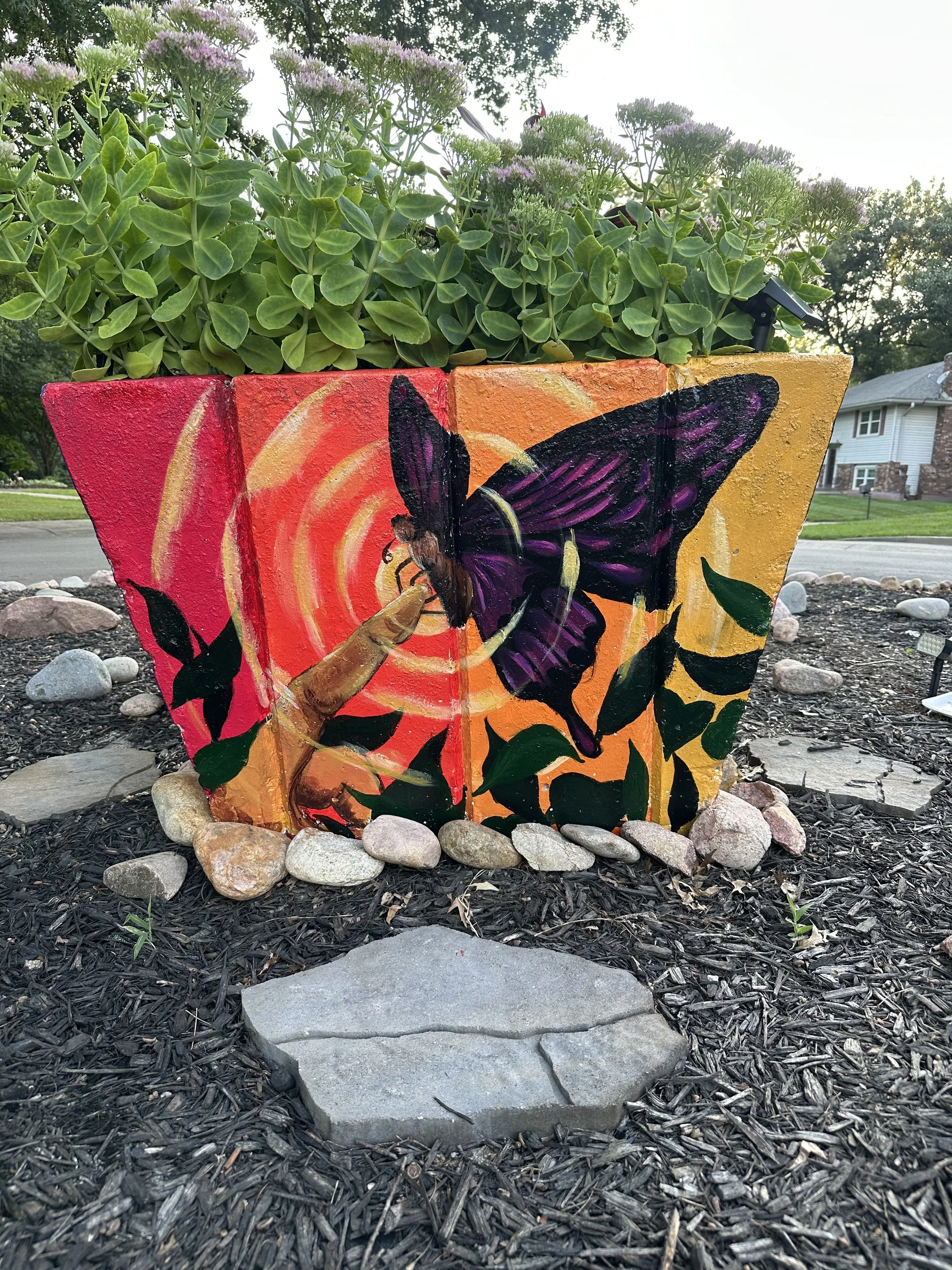 This project is located in Kansas City, KS, within a circle drive neighborhood. The goal of this project was to create a design/illustration that embodied the neighborhood’s qualities and goals: Unity, Diversity and a Safe Space for children. The images above this description are the drafted mock-ups of the proposed and approved design, while the images below are the finished product.